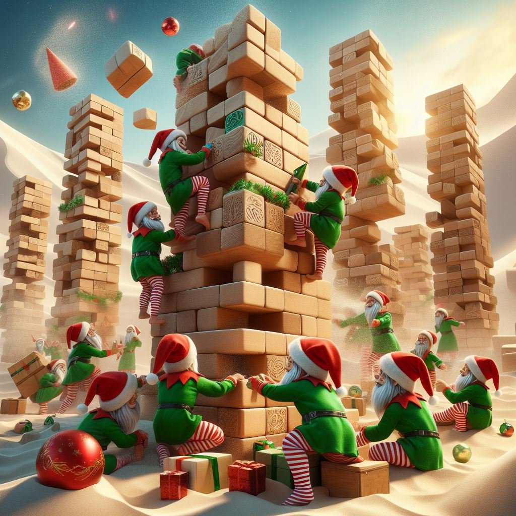 We deserved a simple one today. I started with a function that applies gravity to the blocks. It orders them in ascending Z order then just runs over the list and pushes each block down as much as possible. The result is a nicely packed jenga tower.