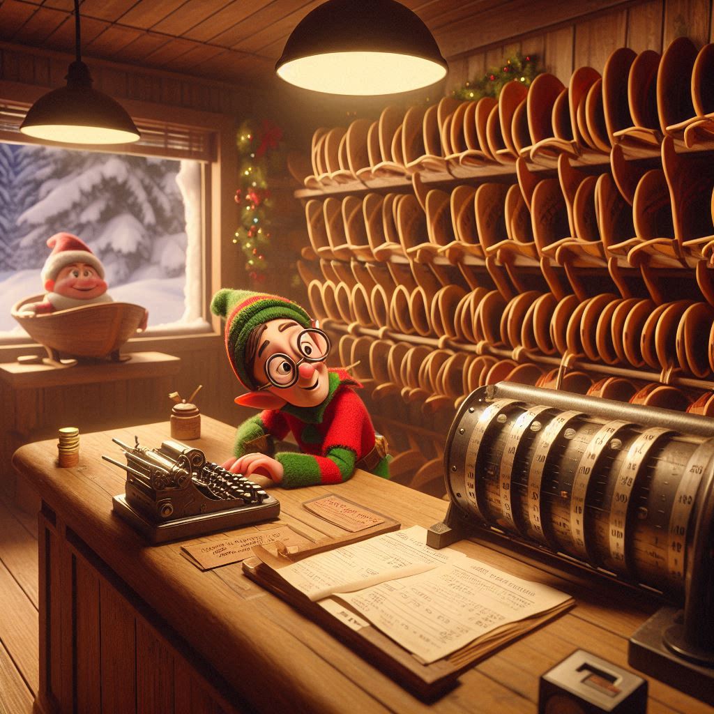 "Our computers are having issues, so I have no idea if we have any Chief Historians in stock! You're welcome to check the warehouse, though," says the mildly flustered shopkeeper at the North Pole Toboggan Rental Shop. The Historians head out to take a look.