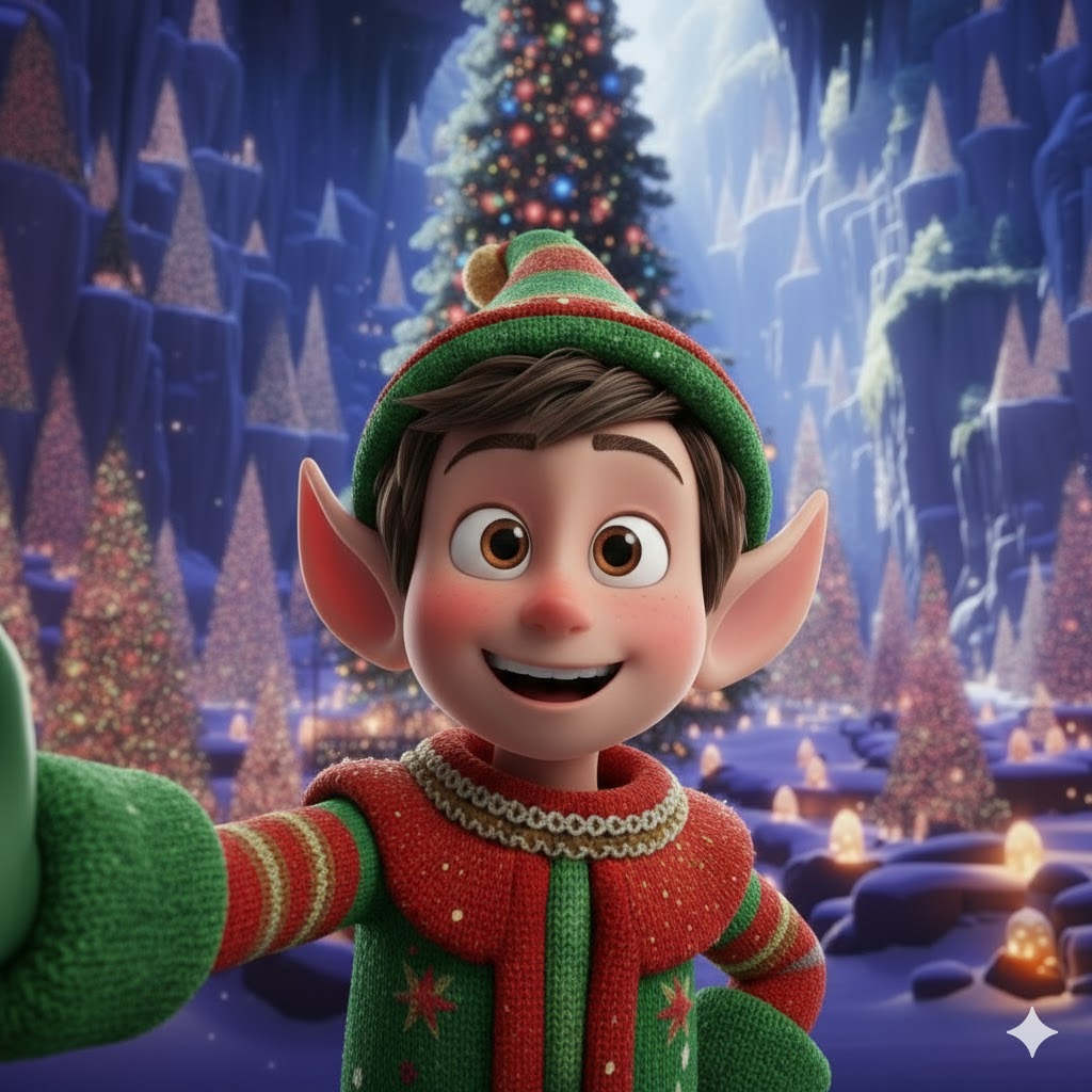After bumping around for a few minutes, you emerge into a large, well-lit cavern full of Christmas trees!