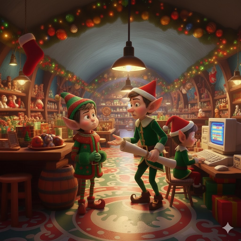 You get inside and take the elevator to its only other stop: the gift shop. "Thank you for visiting the North Pole!" gleefully exclaims a nearby sign. You aren't sure who is even allowed to visit the North Pole, but you know you can access the lobby through here, and from there you can access the rest of the North Pole base.